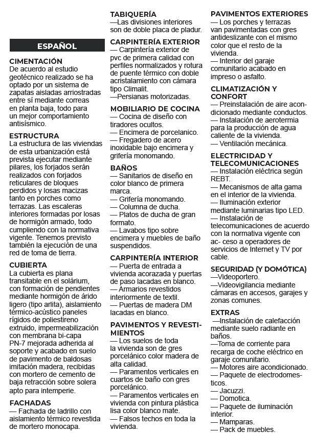 Las Villas cuenta con planta sótano (puede ser diáfano o personalizado) planta baja, planta alta y solárium. Tienen posibilidad de ascensor interior con vistas panorámicas, pre-instalación de estación de carga para vehículo eléctrico de domótica en toda la casa y jacuzzi.